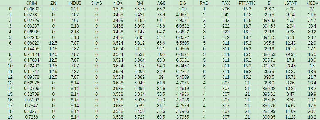 波士顿房价预测是一个经典的机器学习任务,类似于程序员世界的“Hello World”。和大家对房价的普遍认知相同,波士顿地区的房价受诸多因素影响。美国某经济杂志登出波士顿房价数据集,该数据集包含506条观测信息,统计了13种可能影响房价的因素(输入变量)和该类型房屋的均价(输出变量),其中每条观测信息包含城镇犯罪率、一氧化氮浓度、住宅平均房间数、到中心区域的加权距离以及自住房平均房价等关于波士顿周边或者城镇房价的描述,期望通过分析影响波士顿房价的因素来构建房价预测模型。相关属性描述如下图所示,其中最后一项就是想要预测的房屋均价。